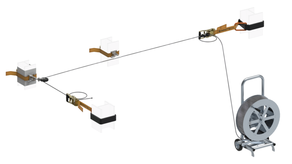 The TEMP lifeline system from INNOTECH can be used everywhere that a horizontal surface must be temporarily protected against falls. The system can be used on construction sites, as well as for industrial structural developments with very varied support structures (steel, facade, warehouse, and bridge construction, etc.).