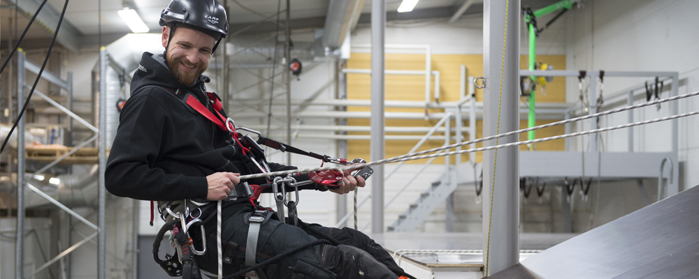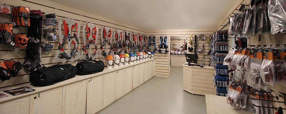 Welcome to our fall protection store in Stockholm. Here you find a wide range and big stock of fall arrest equipment for work at heights. Here you get the help of skilled personnel to choose the equipment that suits your needs. Why not try out our fall arrest harnesses or rescue equipments in our modern 600 m2 training facility that is located in same building. We always keep a large stock for fast deliveries all over Europe, and we stock everything from fall arrest equipment for roofing to advanced rescue equipment for wind turbines.