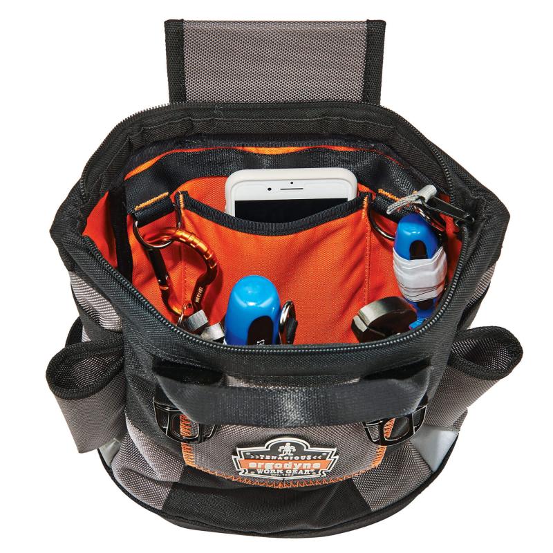 The Topped Tool Pouch with Zipper Closure houses tools, small parts and hardware. The one-handed snap-hinge opening has a zipper closure system for safety and security. An innovative modular buckle connection system on the back easily connects to standard tool belts and fall protection harnesses without the worker having to remove them. Tool lanyards can be attached to two D-rings on the holster for additional safety and security. Can be used as both a tool pouch, tool bag or bolt bag!