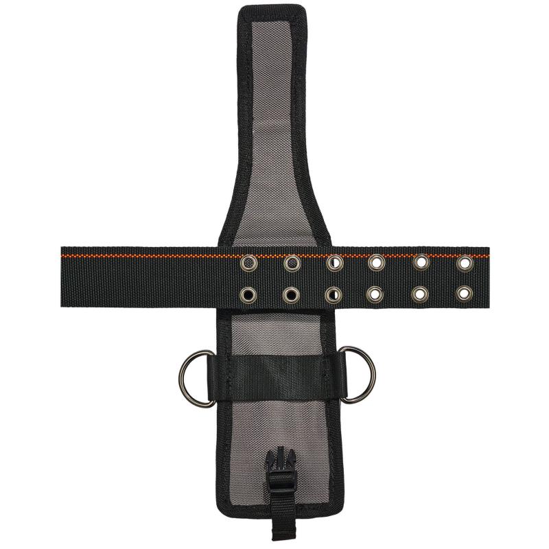 The Small Tool and Radio Holster secures small hand tools, as well as radios and cell phones. An innovative modular buckle connection system on the back easily connects to standard tool belts and fall protection harnesses without the worker having to remove them. Tool lanyards can be attached to two D-rings on the holster for additional safety and security.