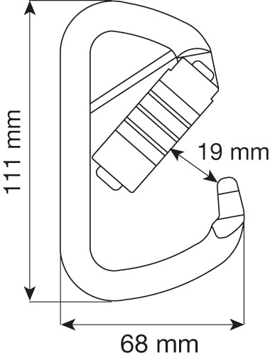 High strength steel carabiner equipped with removable anti-rotation pin.