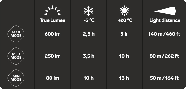 It comes with two attachment options and a powerful 600 lm output. With a comfortable fit and unique adaptability, this headlamp will become everything you need it to be, so that you can focus on getting the job done. It withstands heavy rain and water from any direction in accordance with IPX5.