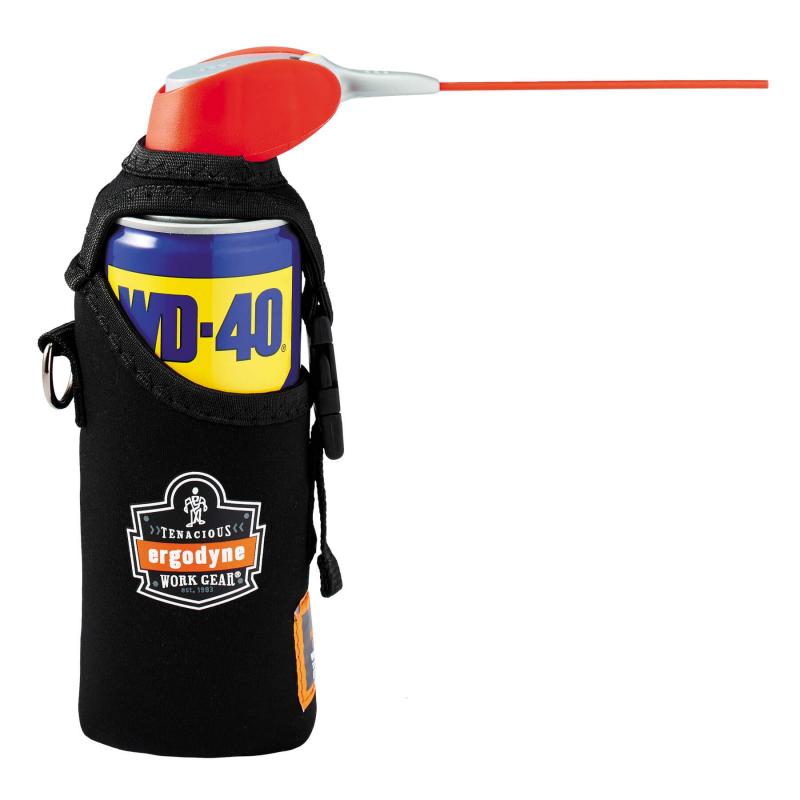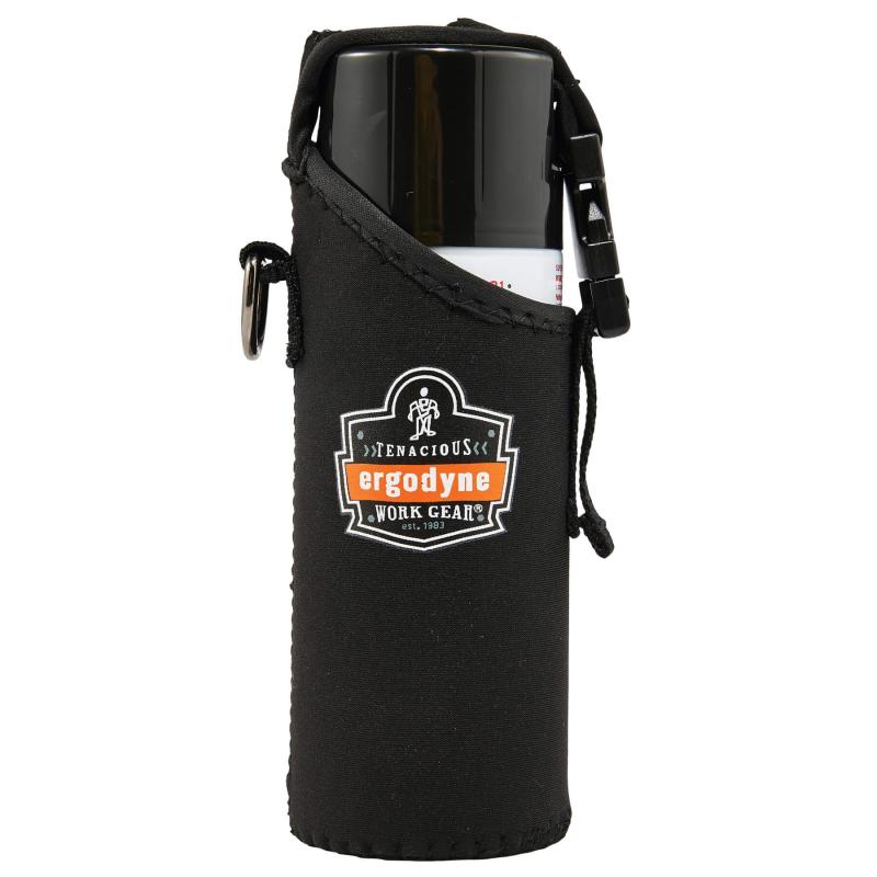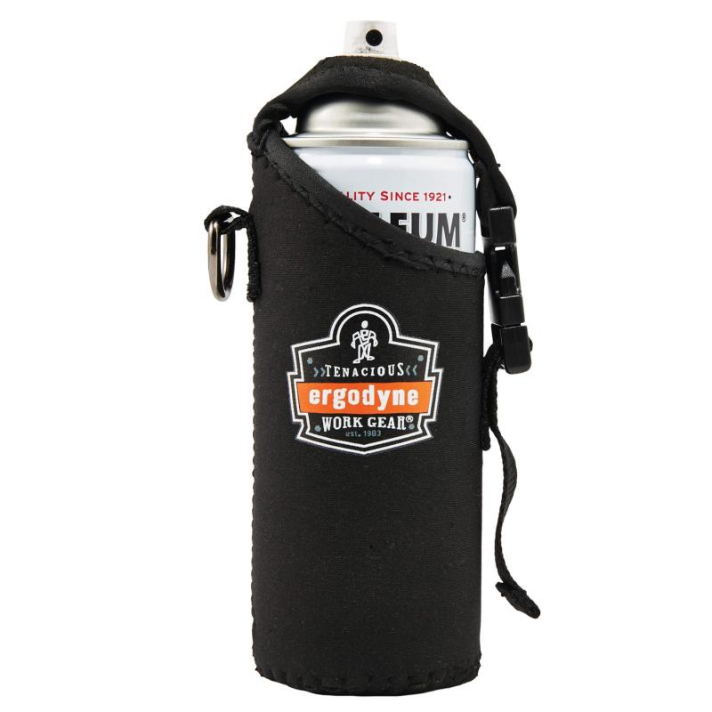 The Squids® Can / Bottle Holder & Trap makes it easy to carry and secure your water bottle, spray bottle, aerosol can or other canisters of similar sizes to prevent dropped objects while working at-heights. There is a zinc plated D-ring on the backside that can be used to attach a tool lanyard to complete your tethering system. To keep your hands free, there’s a stainless-steel belt clip on the side to easily attach to a tool belt or fall protection harnesses. The can and bottle holder is made of abrasion-resistant neoprene that stretches to fit 16.9oz. (0.5L) containers including most standard plastic water bottles or even a can of WD40. The adjustable webbing strap can accommodate a variety of bottles and cans, and features a buckle closure system to safely secure them into the holder.
