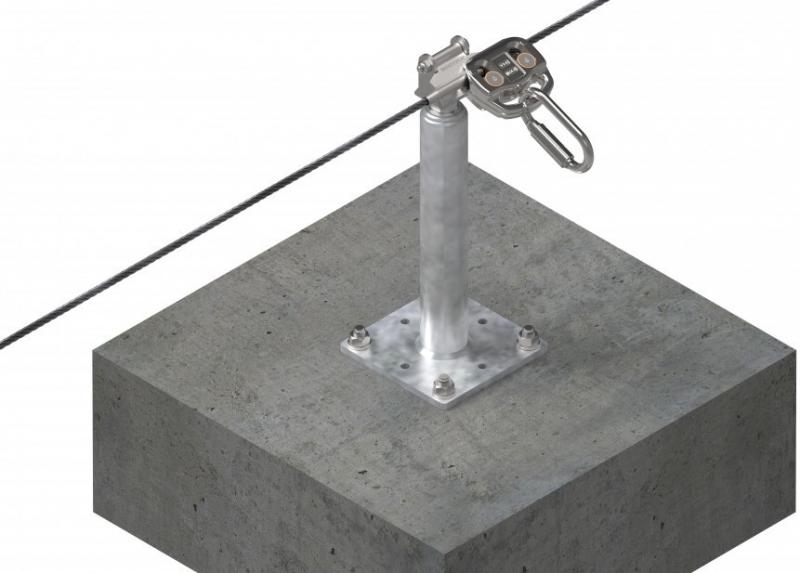 System post in galvanized steel, intended as an attachment point for lifeline systems EN 795 C and D as well as an anchoring point EN 795 A.