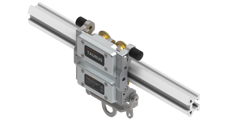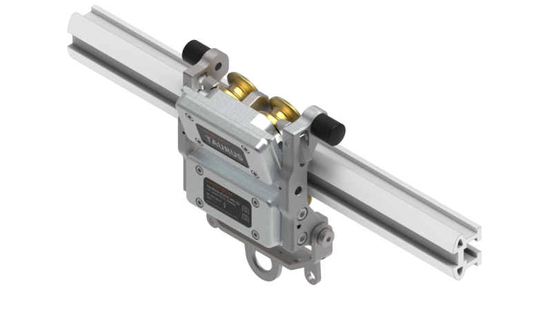 TAURUS removable runner for horizontal use. Can be inserted and removed at any point on the rail system. Suitable for abseiling.