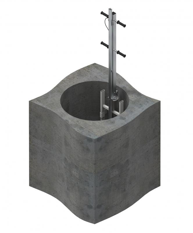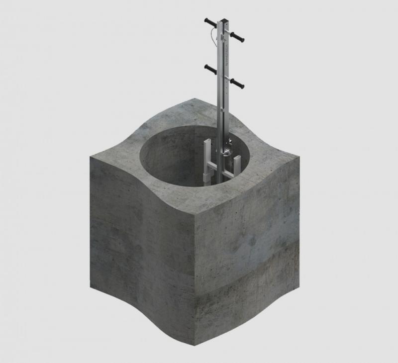 Mobile plug-in support for safe shaft entry into a vertical TAURUS rail system. Only use in combination with TAURUS-SCE-50-A4 (shaft console). Complete with rail and handles. With accessorie TAURUS-SCE-20 you can also attach a fall arrest block with retrieval winch, for quick rescue in an emergency situation.