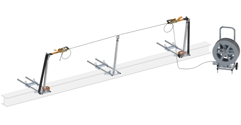 Cable drum with brakes and wheels for practical roll up of the stainless steel cable (AIO-SEIL-30). Includes 150 m stainless cable. The drum is manufactured of galvanized steel.