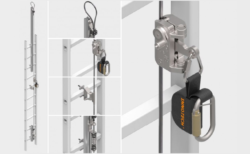 Vert livlinesystem är certifierat enligt nya EN 353-1: 2014. Ett helt nytt glidlås, VERT-GLEIT-50, ger dig högsta möjliga rörlighet, ger optimalt stöd vid klättring och passerar enkelt över stödpunkter utan omkoppling. En ny säkerhetsfunktion på glidlåset gör att felaktig fastsättning på vajern är omöjlig. Systemets förinstallerade komponenter sparar kostnader och tid. Den långa toppdelen gör av och påstigning överst på stegen säker, då du kan kliva av på taket innan du koppla ur från systemet. Stödpunkt monteras var 5:e meter.