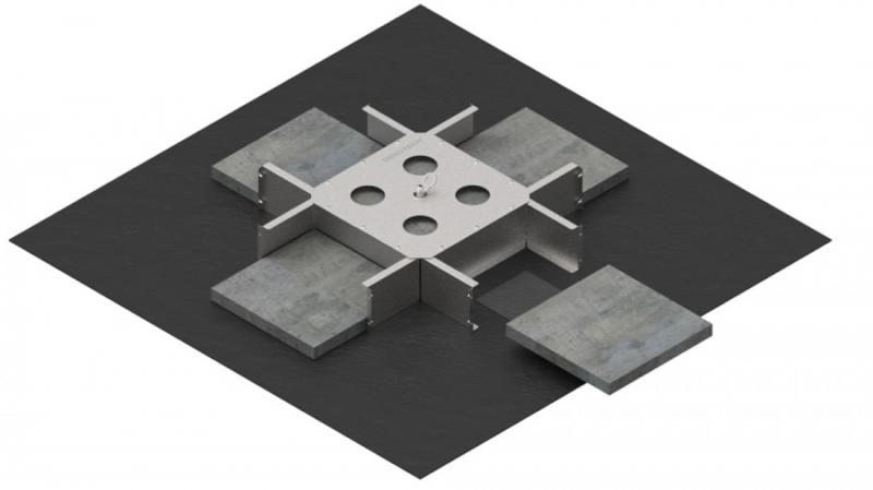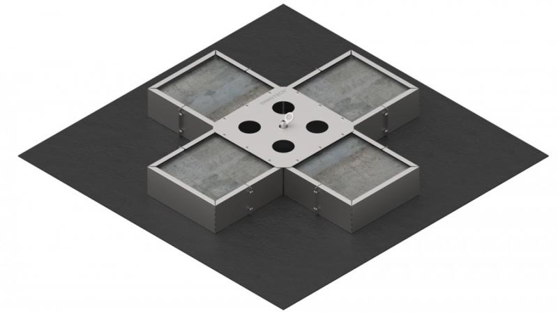 Lättmonterat basfäste helt i rostfritt stål avsedd som ankarpunkt för inkoppling av fallskyddsutrustning. Ställs på taket så inga hål eller liknande behöver göras. Monteras snabbt med endast 28 skruvar, vilket jämfört med tidigare modeller kortar ner montagetid med hela 50%. Används på tak med max 5 graders lutning. Fylls med betong eller betongplattor till en vikt om 350kg. Basen har även testats på vått underlag. Slutvikt varierar beroende på om basen skall användas som mellanbas eller änd/hörnbas.