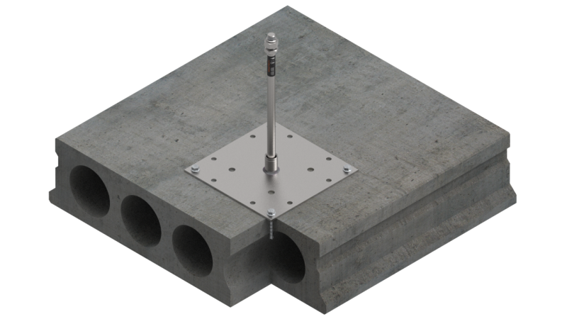Universalpost i rostfritt stål avsedd för montage på betong, betonghålsten, massivt trä, OSB, träform och trapetsformad takplåt. Avsedd att bli en förankringspunkt eller användas som mallanbas i ett livlinesystem. Godkänd för max 3 personer (inklusive 1 person för att ge första hjälpen).