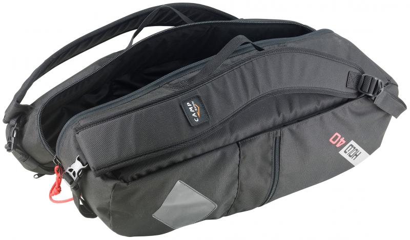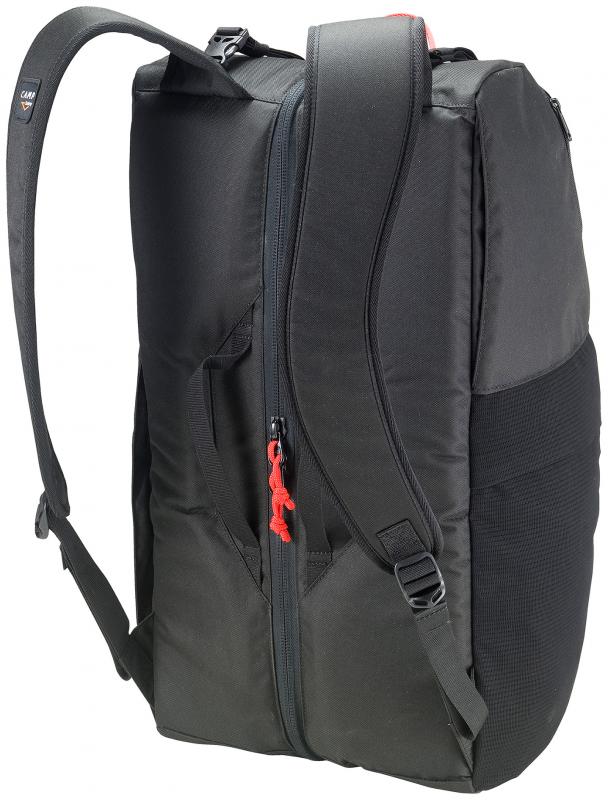 Lättvikts 40-liters ryggsäck i duffel-stil tillverkad av 600D polyestertyg. Unikt blixtlås system utmed baksidan av bagen gör att axelremmarna står uppåt när du lastar eller lossar ur bagen. Vadderade rygg och axelremmar. Tre transporthandtag. 14 yttre öglor för tex karbiner. Tre yttre fickor. Genomskinlig etikettficka. Två invändiga öglor för utrustning.