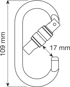 Stålkarbin med hög styrka. Den ovala formen är idealisk för användning med repblock, descenders och ascenders.